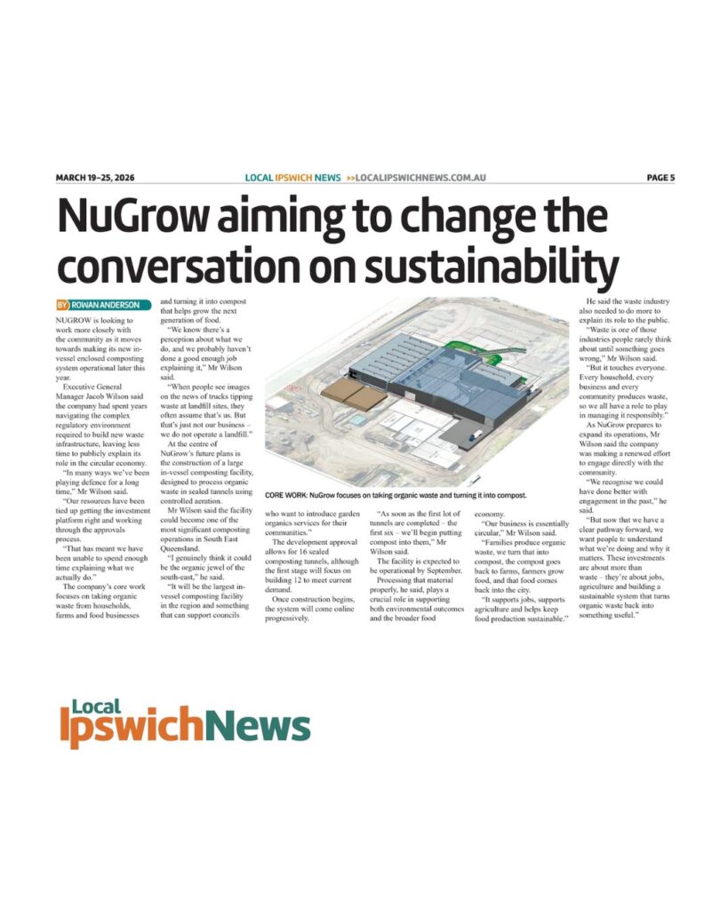 Our Executive General Manager Jacob Wilson recently sat down with Local Ipswich News to share an update about the upcoming IVES project and the role NuGrow plays within the circular economy.
